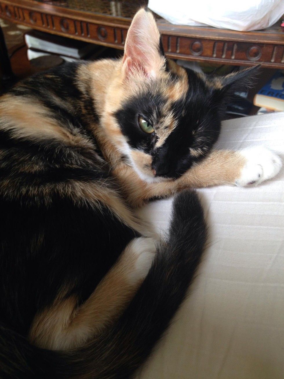 "Former dumpster kitty Grundgetta, now Agatha, is living the life of a princess, enjoying all of the luxuries that come with leading a charmed rescued life."
