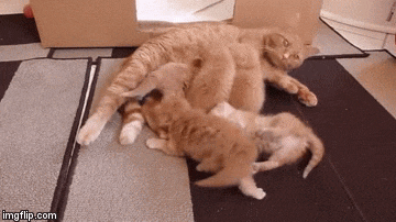 This is what it's like when you have 6 ginger kittens in the house... It's kitty party time all the time!