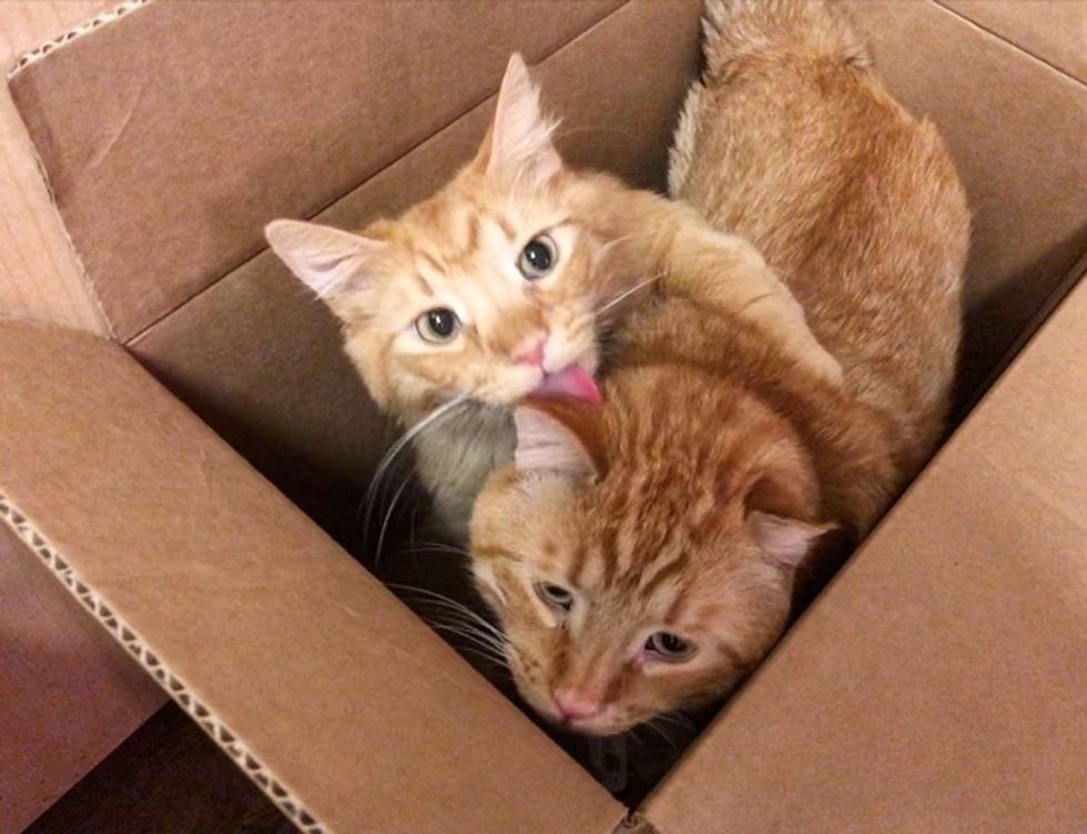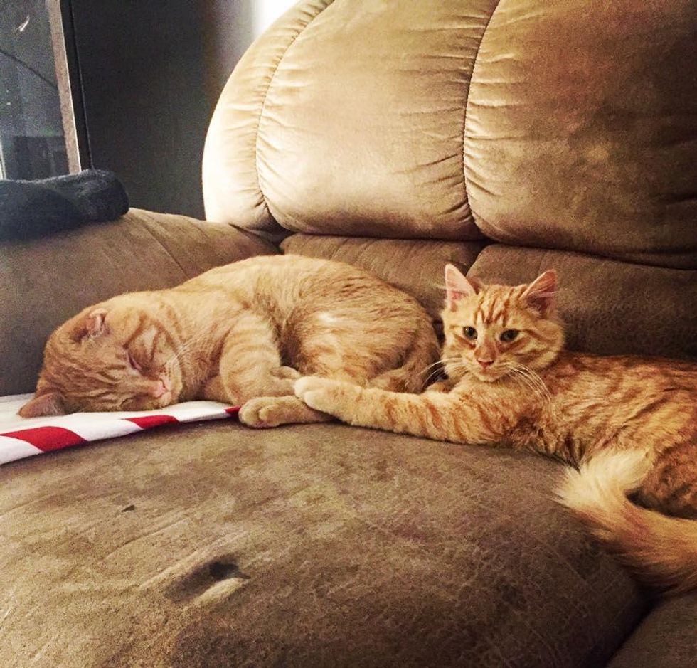Both ginger cats are special needs and they seem to understand each other and look out for one another.