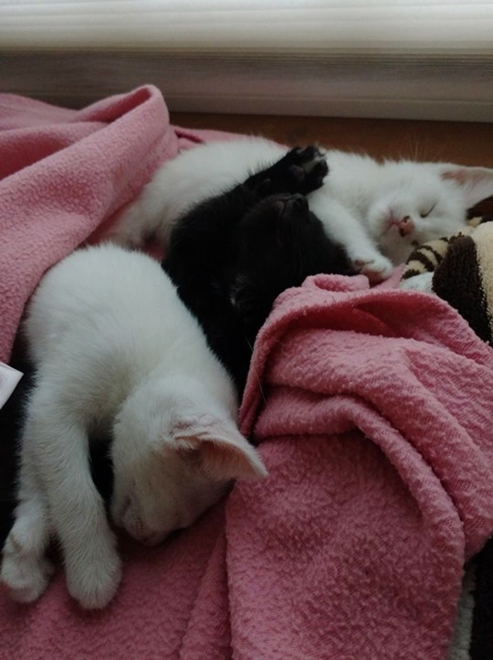 Samantha who has had cats all her life, took in the kittens a week later and continued to raise them with love and care.