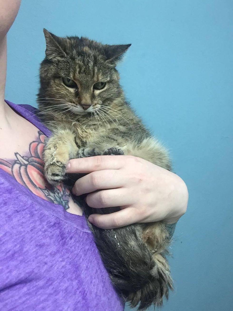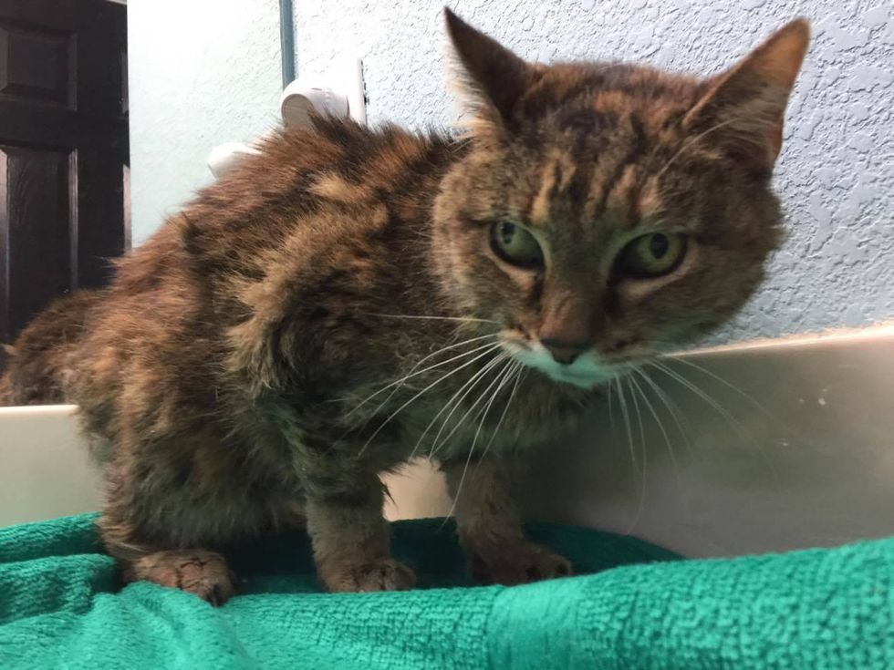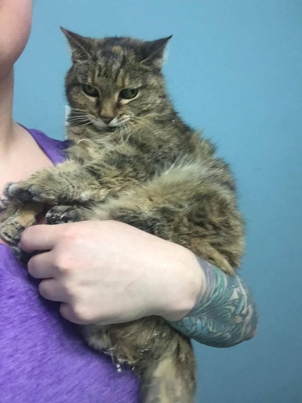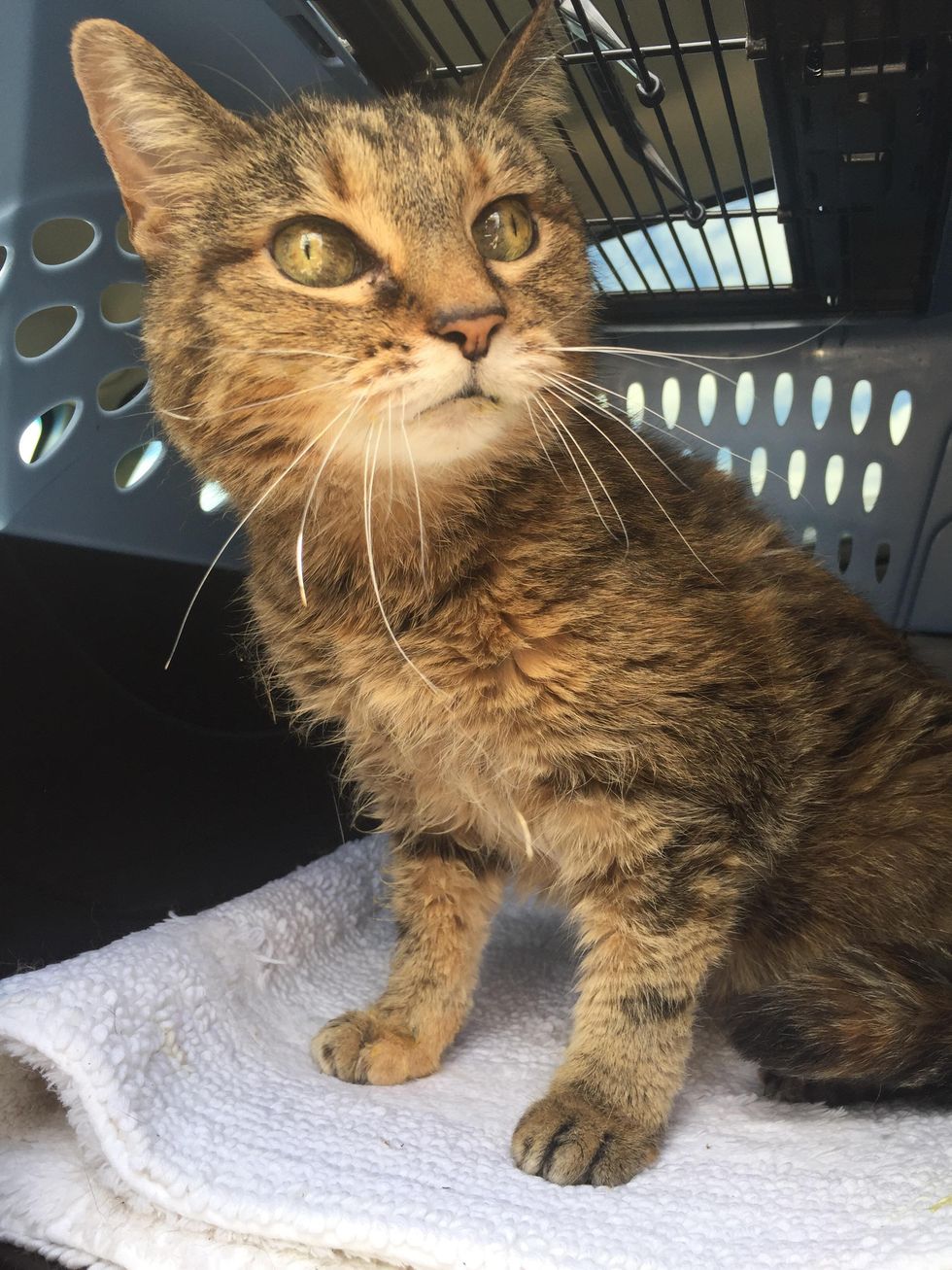 The beautiful tabby cat ended up in the shelter at the ripe age of 20. After dreading being in a cage for about a month, a woman came to her rescue and took her on her freedom ride.