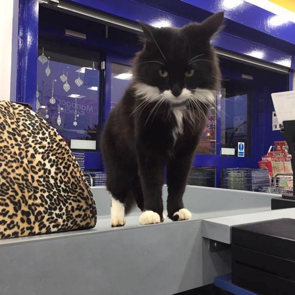 Store manager Tim Evans said that this incredible feline has come a long way since he was found as a homeless cat.