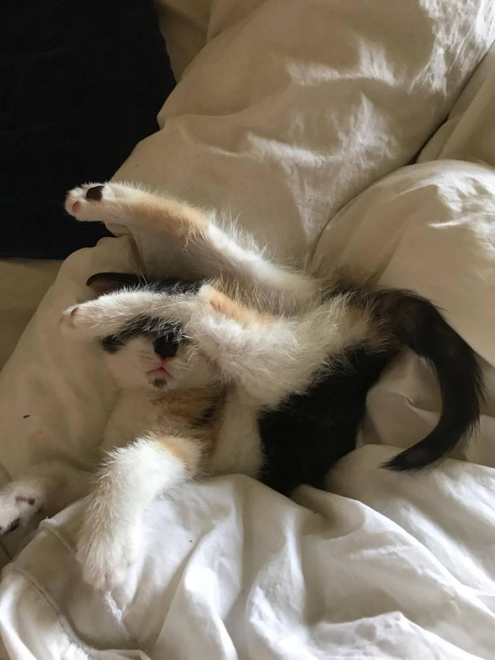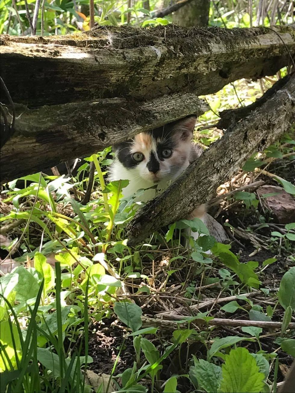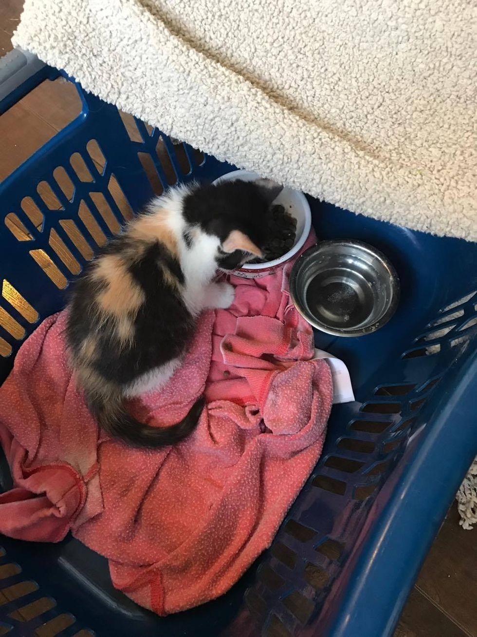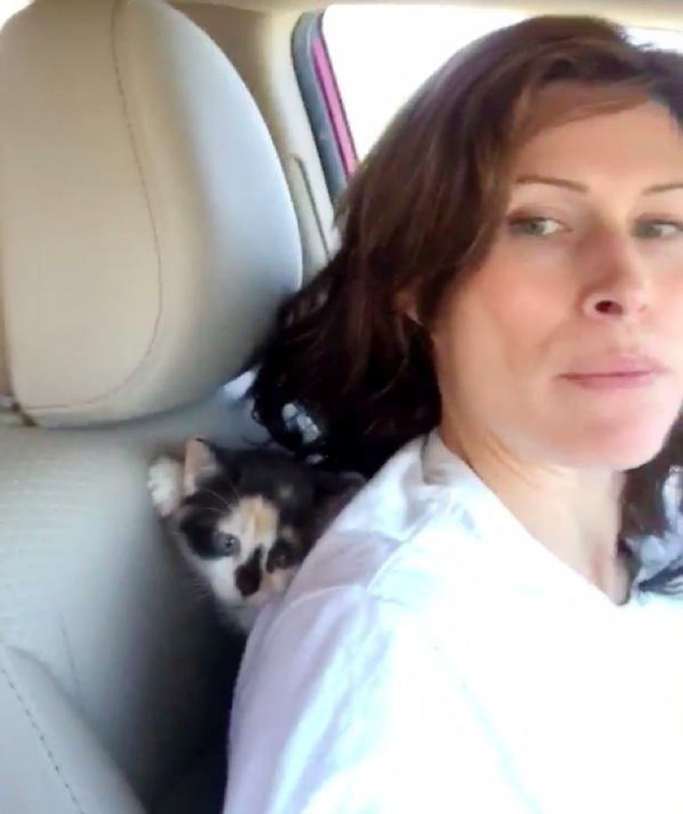 He didn't respond right away but Carla couldn't leave the kitten there, and the calico was clinging to her for dear life.