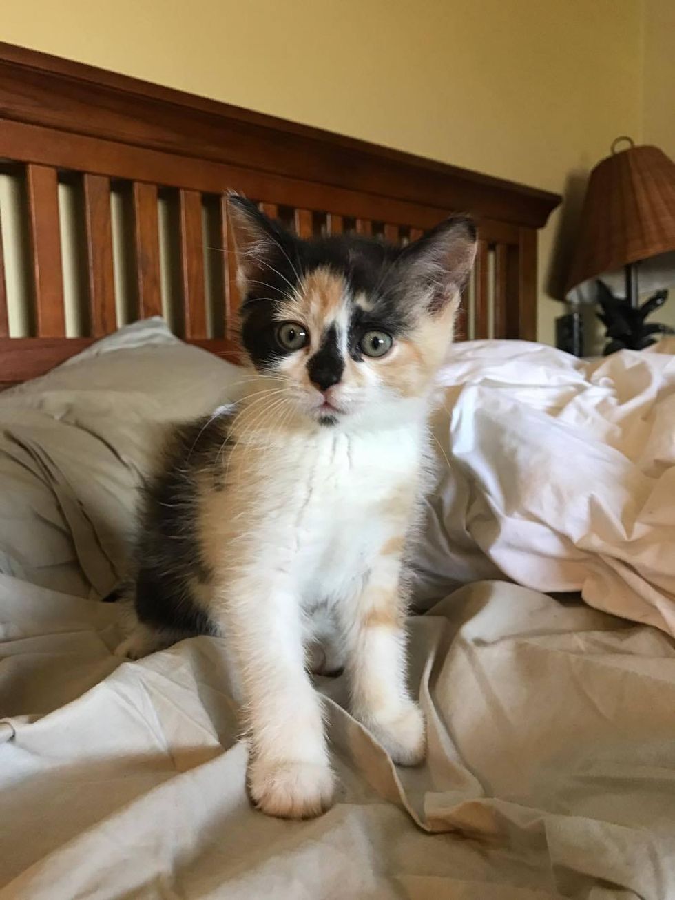 The little calico was extremely frightened and meowed constantly.