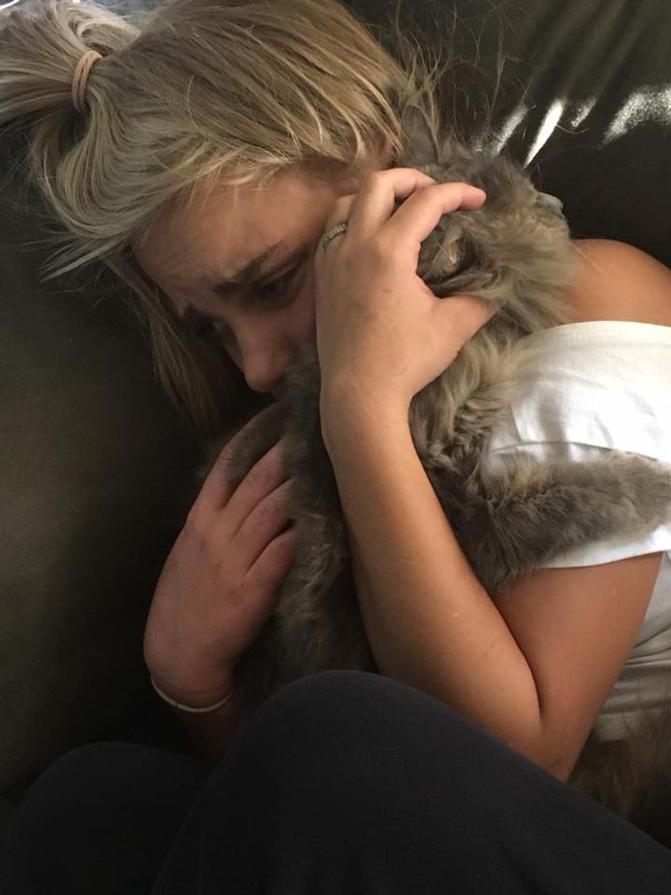She went on a local Facebook group for lost pets, looking for the dark grey kitty's family, and happened to find the cat who was lost in the same city.