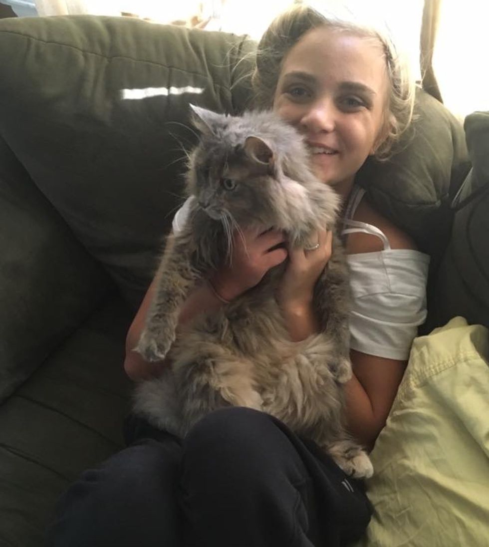 "While searching for my lost cat, I helped reunite another lost cat to her humans after being missing for 2 months. This is a picture of them back together," reddit user ewblood said.