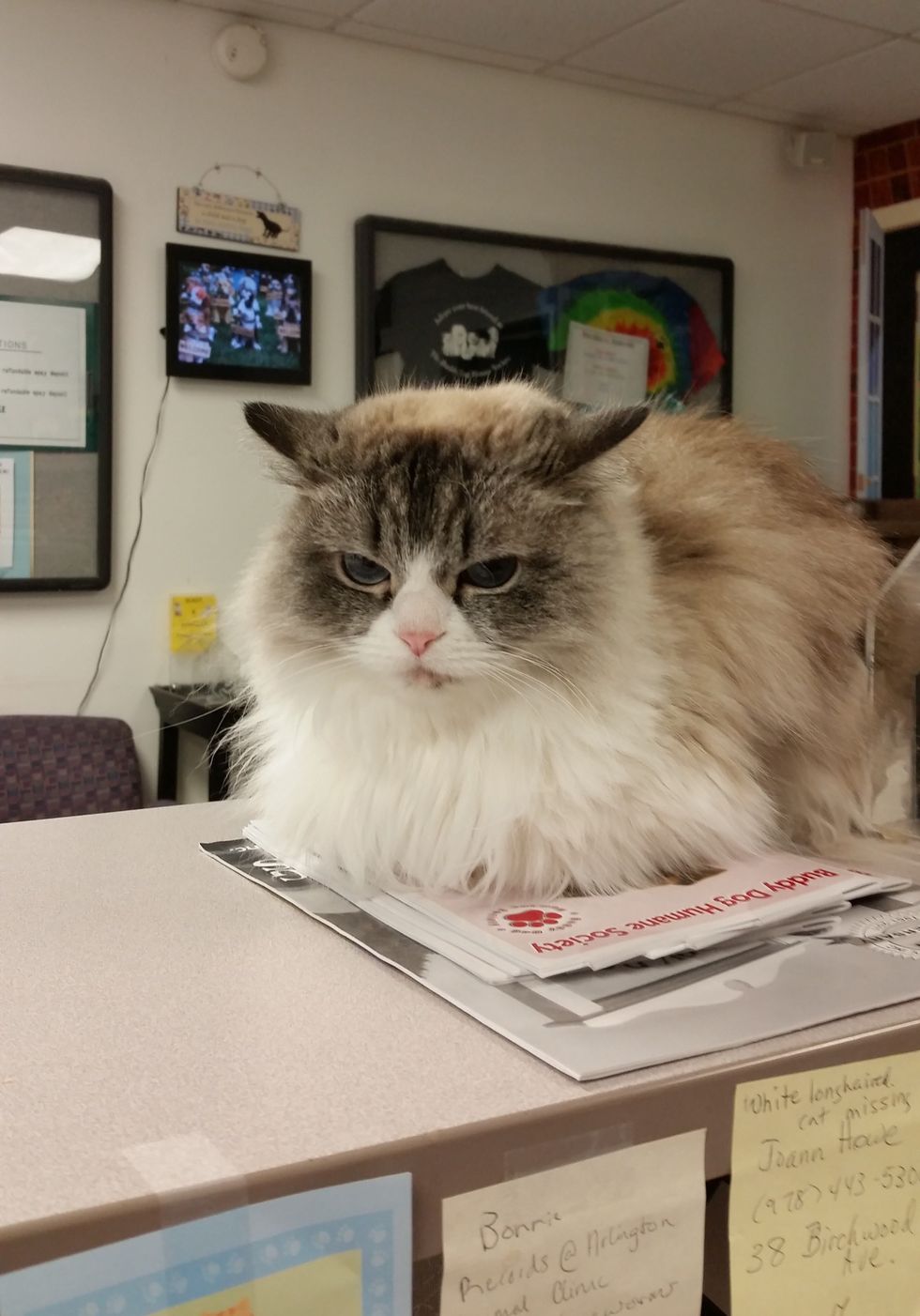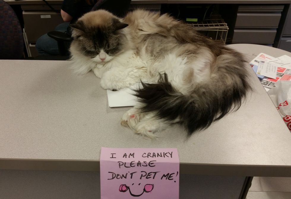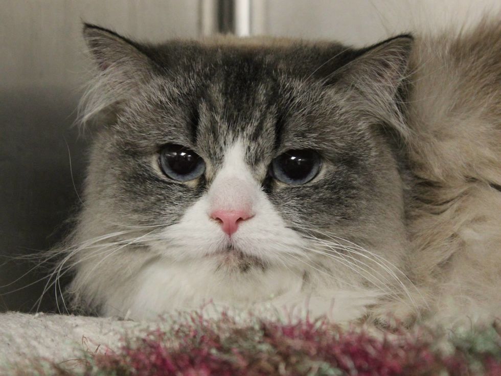 After staying at the shelter for over a year and having been returned once, Buttons the cat was very cranky and didn't want to be touched.