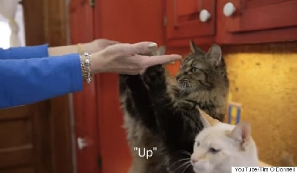 A woman with a hearing loss has taught her cats sign language. One of them is a deaf cat.