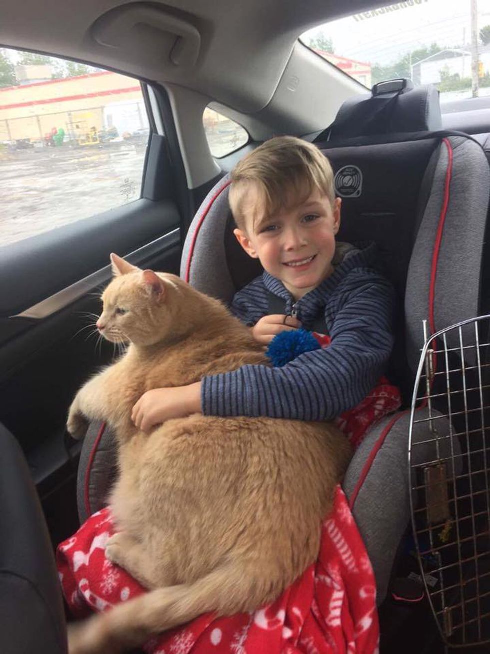 He chose to adopt Tiny, the 10-year-old big kitty! When the family went to meet the ginger boy, it was love at first sight!