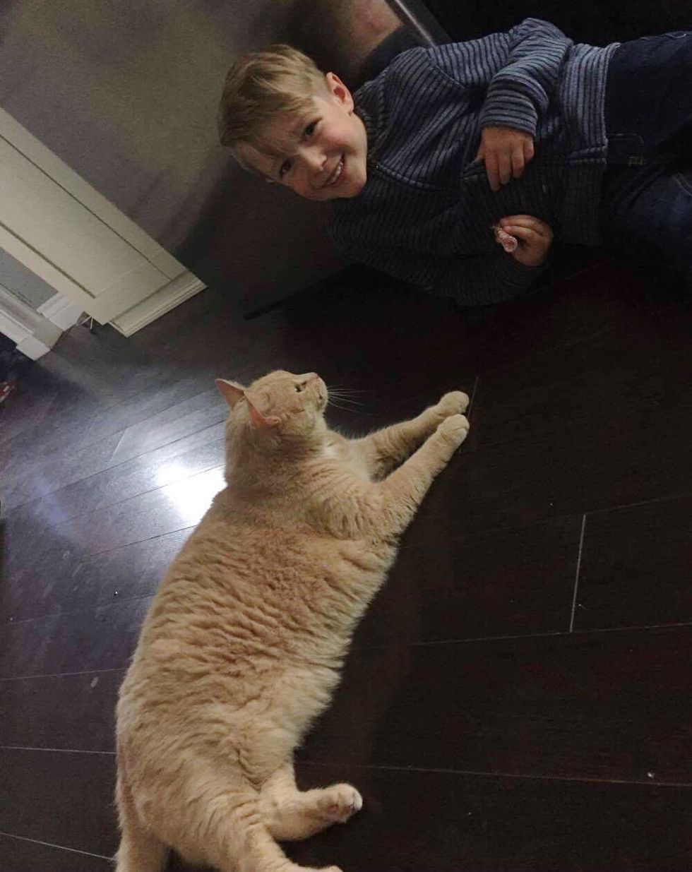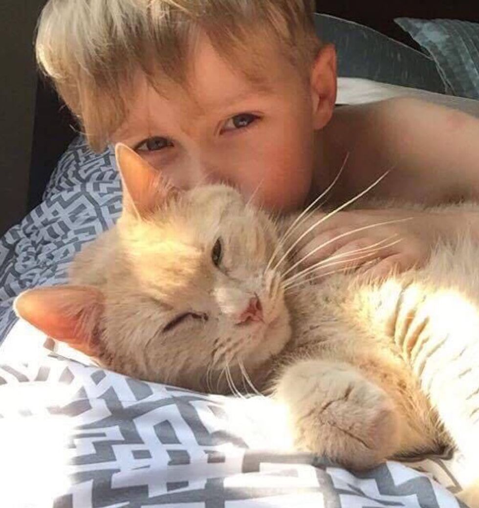 A young boy could adopt any pet he wanted, but he chose a big senior cat. His name is Tiny!